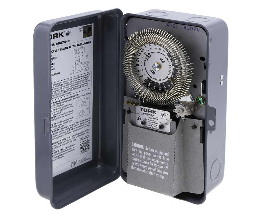 Many Tork timers are designed to be installed in enclosures that provide protection against the elements. You should always check the product’s NEMA rating (e.g., NEMA 3R or NEMA 4) to ensure it is rated for the specific environmental conditions (like rain or dust) where you plan to install it.